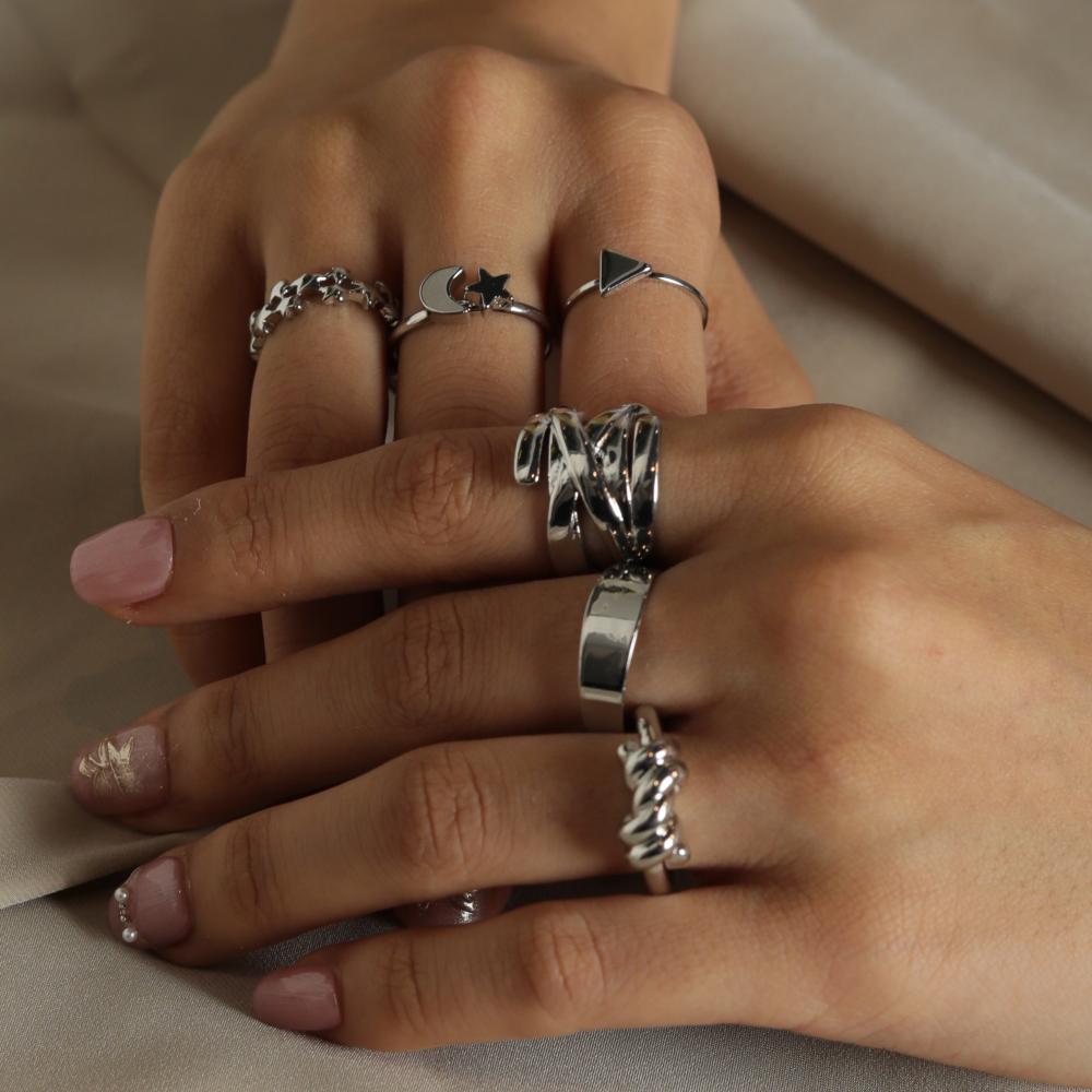 خواتم مجموعة فضي بتصاميم هندسي فاخر