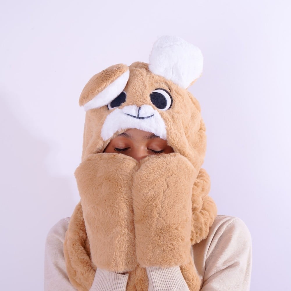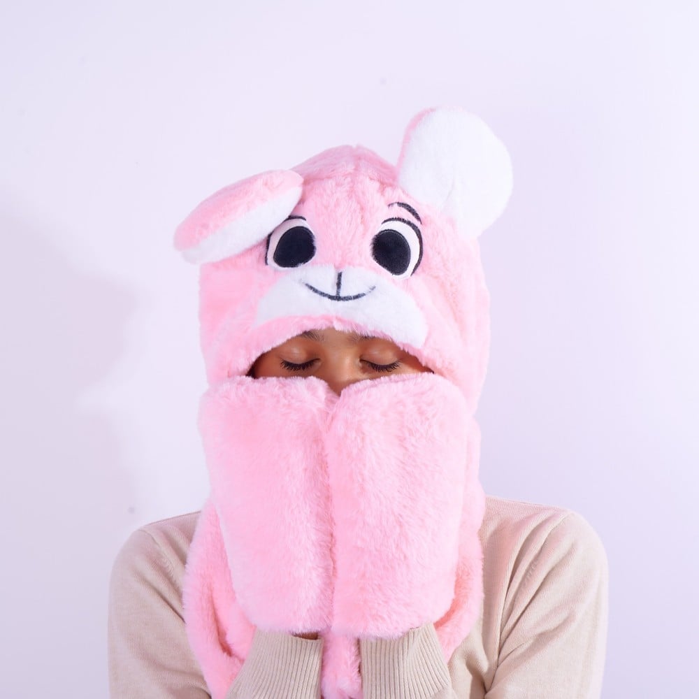 - التصميم: غطاء رأس بتصميم شخصيات لطيفة مرفق بوشاح متصل لتوفير حماية كاملة من البرد.