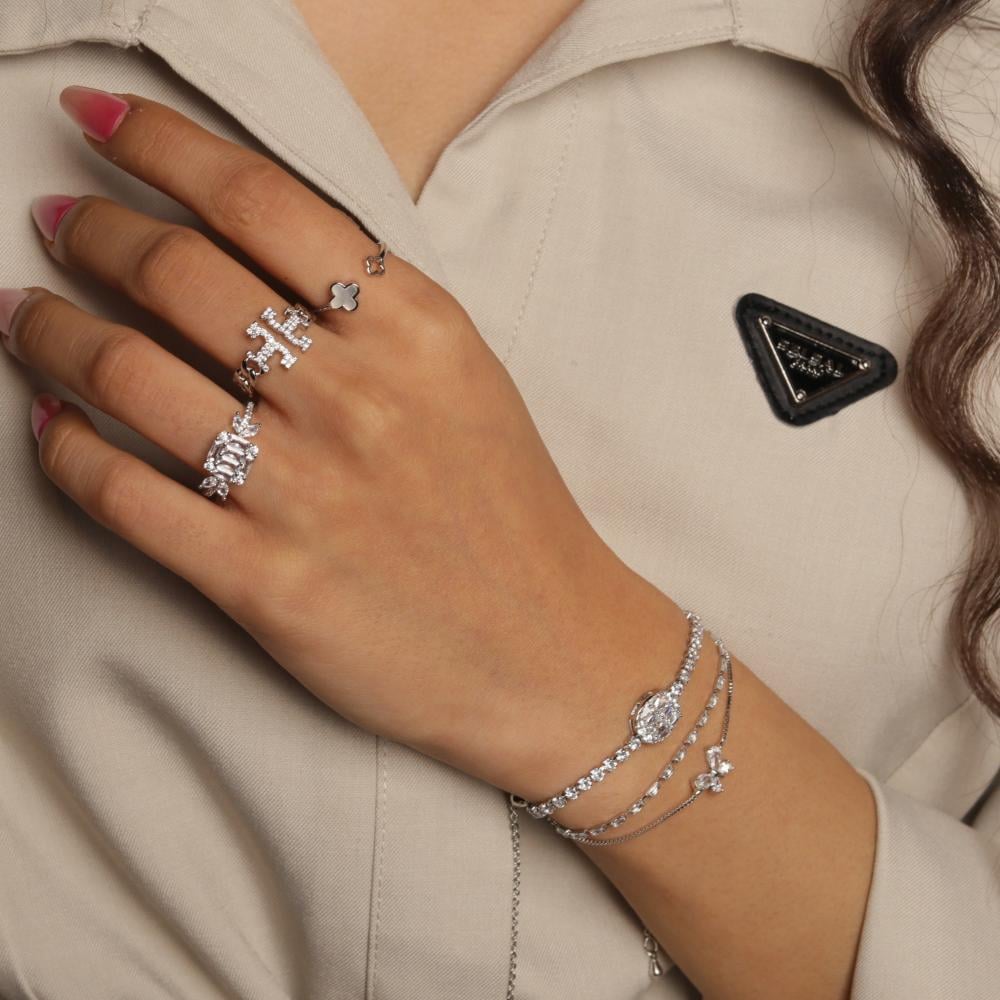 مجموعة أنيقة من الخواتم والأساور فضي مرصعة بالكريستال الفاخر و الزيركون