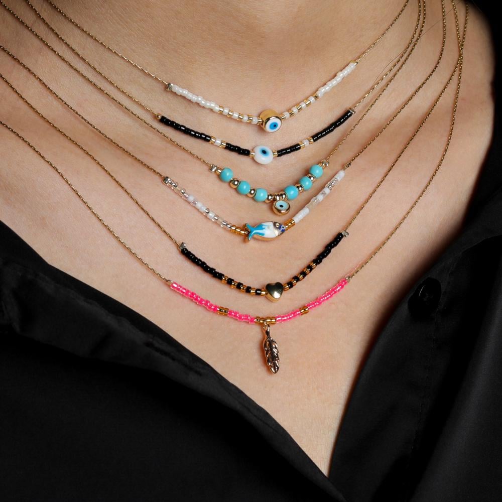 مجموعة سلاسل ذهبي بطبقات مزينة بخرز وعناصر رمزية