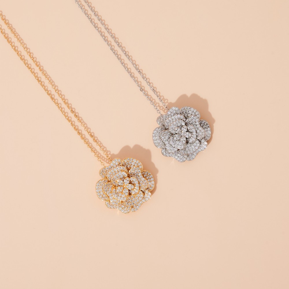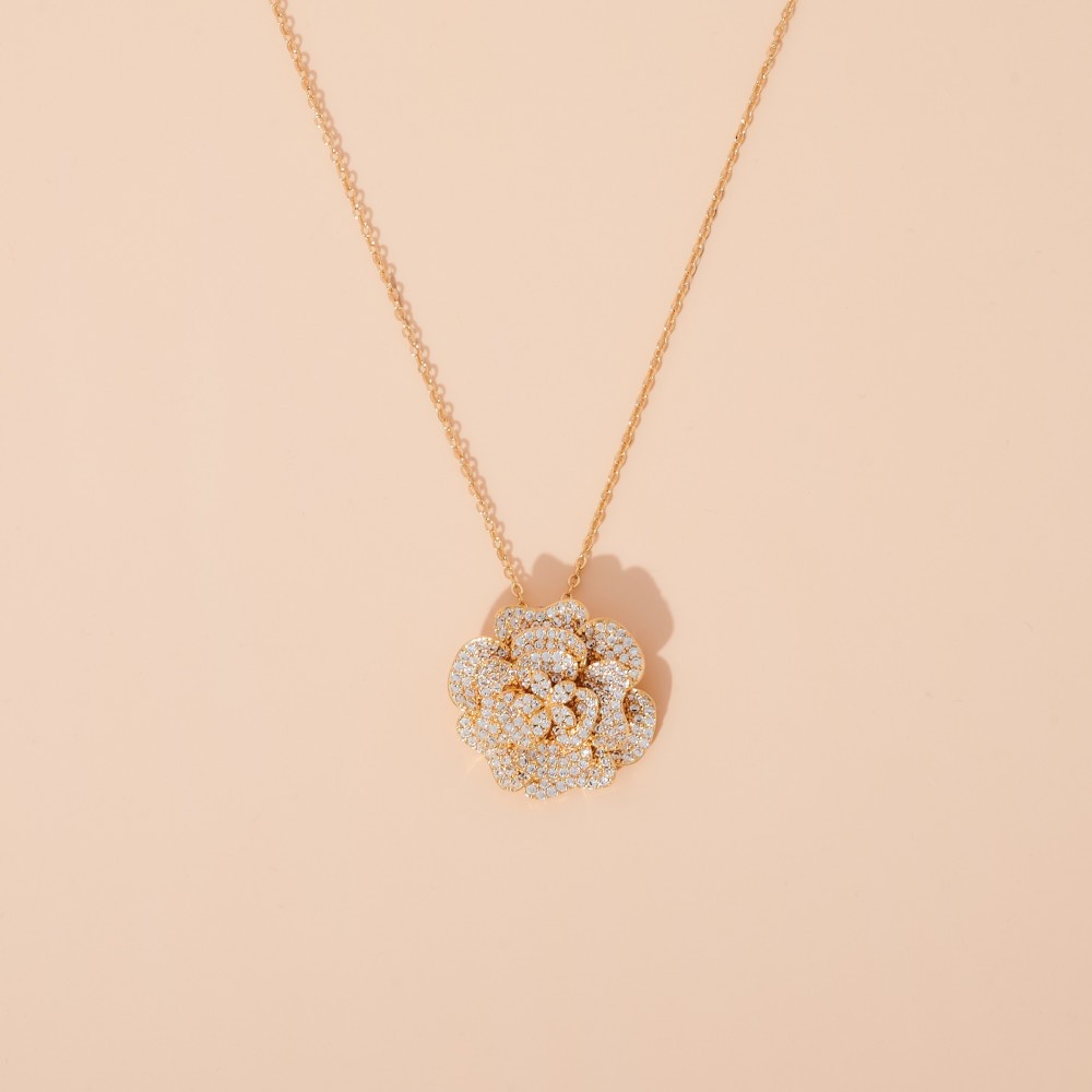 سلسال فلاور انيق مرصع بالزركون مع اختيارك من اللونين الذهبي او الفضي