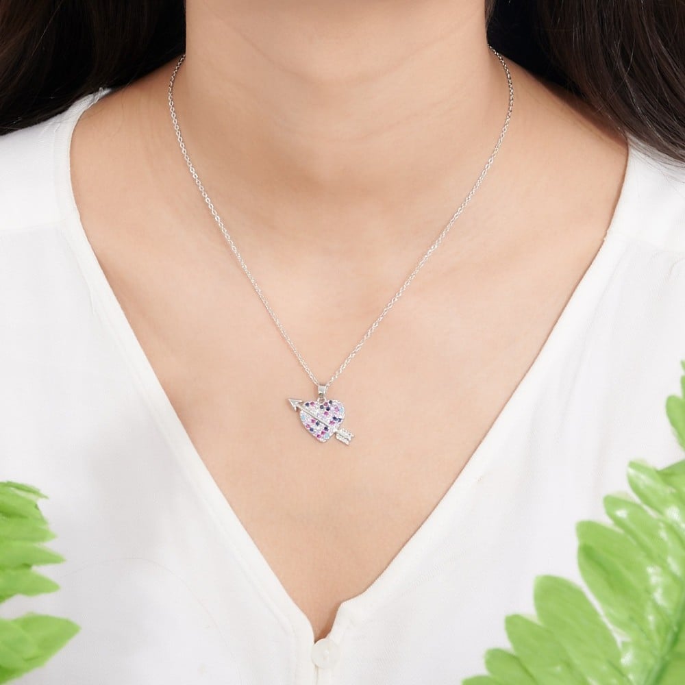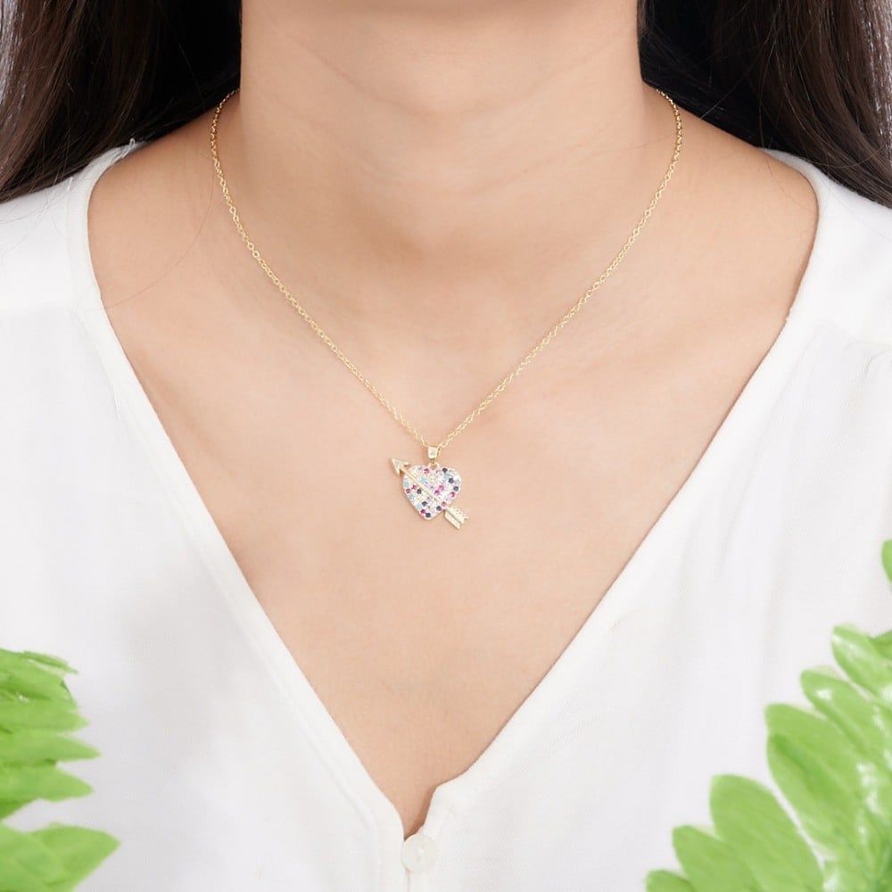 سلسال تعليقة قلب بفصوص ملونة انيقة مع اختيارك من اللونين الذهبي او الفضي